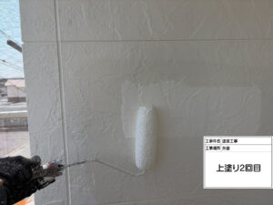 本日は外壁塗装の**上塗り2回目(仕上げ)**を行いました。