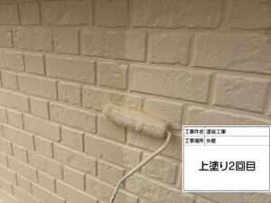 こんにちは!今回は外壁塗装工事の中でも**仕上がりを決定づける「上塗り1回目・2回目」**の工程をご紹介します。