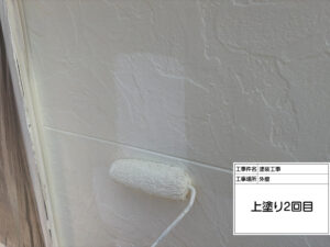 DCP PHOTODCP PHOTO外壁塗装工事|メイン外壁 上塗り2回目(仕上げ塗装)本日は外壁塗装工事の仕上げ工程、メイン外壁の上塗り2回目を施工しました。上塗り2回目は、簡単に言えば「最終仕上げ